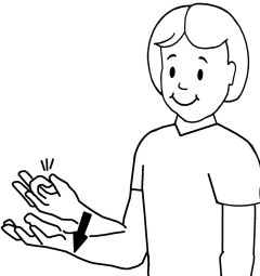 With hand flat, blade forward and palm sideways; start with pointer finger against side of chin and move hand across to other side of chin in a forwards arc.