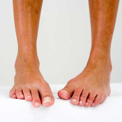 Hold one hand flat, palm down, fingertips slightly forward, thumb pointing out towards body. With pointer finger of other hand pointing downwards in front of blade of flat hand, near wrist, draw a large arc around flat hand to thumb with pointer finger tip.