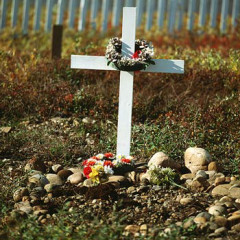 Start with the pointer and middle fingers of both hands extended upwards above shoulders, with palms facing backwards and other fingers in a fist. Move hands forward, and downwards, flipping hands over so palm faces forward.