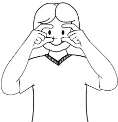 Circle hands in front of eyes with either pointing fingers or thumbs